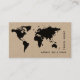 Una tarjeta de visita para una agencia de viajes, o cualquier otro profesional... con la imagen de un mapa negro del mundo en papel kraft. En el mundo de los viajes, las conexiones lo son todo. Es por eso que una tarjeta de visita temática a los viajes es más que sólo un pedazo de papel, es una herramienta de marketing inteligente y de bajo costo que ayuda a los agentes de viajes y guías turísticos a desarrollar su marca y atraer nuevos clientes. Ya sea que sea un consultor de viajes, un operador turístico o un guía local, entregar a alguien una tarjeta de visita de agencia de viajes diseñada profesionalmente deja una impresión duradera. Es una manera rápida de compartir sus datos de contacto, mostrar sus servicios de viaje y mantener su marca en la mente mucho después de que termine la conversación. Para los guías turísticos que se reúnen con los viajeros en viaje, una tarjeta de visita guiada bien diseñada puede convertir un breve encuentro en negocios o referencias repetidas. Estas tarjetas son fáciles de distribuir en ferias de viajes, hoteles, aeropuertos y lugares turísticos, en cualquier lugar donde estén sus clientes potenciales. Con toques personalizados como logotipos, iconos de viaje o temas de destino, su tarjeta de visita de personalizado se convierte en una pieza de marketing memorable que refleja su identidad de marca.