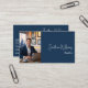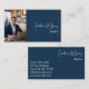 Una tarjeta de visita moderna para un agente inmobiliario o inmobiliario. Añade tu propia fotografía y crea una tarjeta profesional de visita con fondo azul marino y fuentes contemporáneas en blanco.