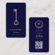 Moderno Realtor Real Estate Agent Midnight Blue Business Card. Destacar en el abarrotado mercado inmobiliario con esta elegante tarjeta de visita que cuenta con un diseño de clave oro vintage y un código QR que enlaza directamente con su sitio web o listados de propiedades. Como consultor de agentes inmobiliarios, usted sabe que la clave del éxito es hacer una impresión duradera con los clientes potenciales. Esta tarjeta de visita única hace justamente eso, transmitiendo un sentido de pericia y sofisticación que lo diferencia de la competencia.