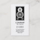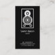 Una plantilla de tarjeta de visita clara, elegante y atractiva, con un motivo de altavoz de audio que atrae la atención. Información principal de la empresa en la parte delantera, con nombre y contacto personal en la parte posterior, con el mismo motivo y estilo.