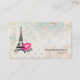 Elegantes tarjetas de negocios de temática parisina. Diseñado con un bonito fondo de patrón vintage con rosas débiles y fleur-de-lis. Enlosado sobre la parte superior se encuentra un ilustracion de la torre del eiffel. Los labios rosados calientes al lado del famoso monumento que dice xoxo! Elegante y elegante.