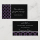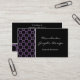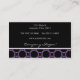 Promociona tu empresa con este diseño de tarjetas de visita simple y elegante, con un fondo negro azabache adornado con círculos amatistas. El texto de personalizable le permite alterar fuentes, cambiar colores y tamaños de texto para reflejar mejor los servicios de su empresa. Adecuado para diseño gráfico, marketing y ventas, seguros, financieros o fotográficos.