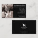 Una simple plantilla de tarjeta de visita negra para la información de contacto y la foto. En el reverso hay un pequeño gráfico de perros que puede ser reemplazado por tu logotipo u otra imagen. Podrá elegir entre esquinas regulares y esquinas redondeadas modernas. Este diseño negro limpio es genial para casi cualquier profesional de negocios, incluidos fotógrafos, diseñadores gráficos, actores, expertos en medios sociales y empresarios.