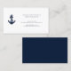 Tarjeta De Visita Ancla azul de la Marina Náutica elegante