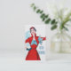 Ilustracion del vintage de una mujer que modela un vestido a partir de los mediados del siglo XX. Rojo con 3/4 s; eeves y una cintura apretada. Un lue y una blusa rayada blanca dan un instinto.