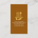 En la parte superior, en una cubierta marrón, se encuentra el logotipo de "cubiertos" dorados que se puede utilizar. A esto le siguen los detalles de contacto y dos opciones de slogan para que publique sus servicios.