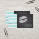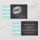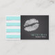Tarjeta de presentación Aqua Blue White Stripes Faux Silver Shine Lips
