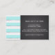 Tarjeta De Visita Aqua Blue White Stripes Faux Silver Shine Lips