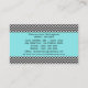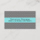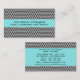 Moderna y elegante tarjeta de visita Chevron con fondo a rayas zigzag en blanco y negro y un sencillo overol turquesa. Esta moda y diseño elegante es fácil de personalizar con los detalles de su negocio. Haga clic en "Personalizar" para encontrar más opciones de personalización.