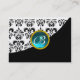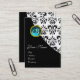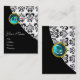 Tarjeta De Visita AQUAMARINE AZUL DAMASK MONOGRAM, plata turquesa
