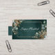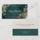 Muestra la moda de tu marca, el estilo moderno con esta elegante tarjeta de visita botánica bohemia. Este sofisticado diseño cuenta con hermosos arreglos de productos botánicos secos y conservados, incluyendo eucalipto suave, pampas de plumas y delicadas hortensias blancas, todo arreglado artísticamente en las esquinas. Este follaje natural se encuentra sobre un fondo de color de agua verde esmeralda, profundo y lujoso, que crea una tela monótona y de gama alta. El glamuroso acento de falso purpurina de oro y hojas de oro pintadas le da un toque de opulencia moderna, mientras que un marco de oro limpio y minimalista encierra elegantemente tus detalles profesionales. Esta elegante tarjeta de visita está diseñada para el emprendedor profesional y creativo contemporáneo que valora una estética de moda, natural y sofisticada. Es una elección excepcional para una amplia gama de profesiones de alta gama, incluyendo planificadores de bodas, estilistas de eventos y diseñadores florales modernos. El elegante diseño de tendencia también es perfecto para diseñadores de interiores, gerentes domésticos y estrategas de marcas. Además, esta tarjeta de visita proporciona una primera impresión memorable y lujosa para artistas de maquillaje de gama alta, blogueros sobre estilo de vida y dueños de tiendas de moda.