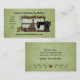 Prima tarjeta de visita rústica para artesanos de costura y tejido con escenas gráficas muy detalladas de una máquina vintage de coser, pilas de tela, tijeras y hilo delante de una viuda. Creado sobre un fondo de vintage con un aspecto verde moteado en parte con arte adquirido de digiwebstudio.com. Personalizar todo el texto en el sencillo formulario Zazzle en línea.