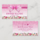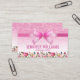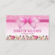 Tarjetas de visita profesional de la belleza a la moda con un fondo purpurina rosa, una cinta exuberante, una decoración floral y una plantilla que se personaliza fácilmente.