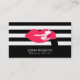 Artista de maquillaje Moderno franjas blancas y negras Red Lips Tarjetas de Negocio.