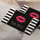 Artista De Maquillaje Rojo Lips Las Tarjetas De Negocios Modernas Black White Stripes.