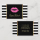 Artista De Maquillaje Rosa Caliente Lipa Las Tarjetas De Negocios Modernas De Rayas Blancas Negras.