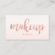 Elegantes y bonitos tarjetas de visita con un falso diseño de tipografía de Relieve metalizado de oro rosa que dice Maquillaje en un fondo rosa rubor. Diseñado para artistas de maquillaje, cosmetólogos y salones de belleza.