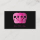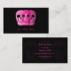 Estas plantillas profesionales de tarjetas de visita para tatuadores presentan tres cráneos góticos de color rosa con un fondo negro. Creativo, único, aterrador, espeluznante, de moda, artístico y moderno estilo vintage. Derechos de imagen de Marg Seregelyi Photography.