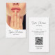Haga una impresión duradera con esta moderna tarjeta de visita para artistas de uñas. Cuenta con espacio para tu foto personalizado, tipografía de guiones elegante, un código QR para reservar o portafolio, e iconos de medios sociales reemplazables para que coincidan con tu marca. Perfecto para crear una moda, un aspecto profesional que los clientes recordarán. Totalmente personalizable e ideal para técnicos de uñas, peluqueros, maquilladores y profesionales de la belleza.