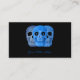 Estas tarjetas profesionales para tatuadores presentan tres cráneos azules góticos con un fondo negro. Creativo, único, aterrador, espeluznante, de moda, artístico y moderno estilo vintage. Derechos de imagen de Marg Seregelyi Photography.