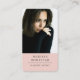 Esta tarjeta de visita cuenta con un diseño fotográfico con una fotografía moderna para los artistas del maquillaje. En el lado inverso se muestra la información de contacto y el nombre comercial. Puede personalizar el tamaño del texto, el tipo de letra, para que se ajuste a su propio estilo personal. Reemplace esta foto del titular del lugar de ejemplo con su propia tarjeta de visita orientada al retrato. Fondo rosa melocotón en la parte delantera y trasera de la tarjeta. Las esquinas redondeadas de la tarjeta le dan un toque de elegancia.