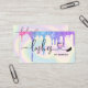 Esta moderna y elegante tarjeta de visita con escritura moderna y corazón en el fondo holográfico de oro de unicornio es perfecta para artistas de maquillaje, negocios de extensión de pestañas, extensión de latigazos, bloggers de moda, bar de exhalación, salón de belleza... Los detalles metalizados en relieve de este diseño son solo simulados. Este producto no contará con ningún relieve ni capa que creen un efecto metalizado.
