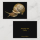 Esta tarjeta de intercambio de artistas presenta un caracol de jardín que emerge de su caparazón sobre un fondo negro puro. Es un molusco gasterópodo terrestre con una concha marrón y beige en el patrón espiral clásico. Sus tentáculos cada uno tiene un ojo al final y apuntan hacia delante mientras se da cuenta de adónde ir, empujados por su fuerte pie muscular.