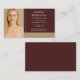 Make a powerful and polished first impression with this Attorney at Law Burgundy Gold Photo Business Card, designed for attorneys and lawyers who want to showcase professionalism with a personal touch. Featuring a rich burgundy color palette accented with elegant gold details, this card includes a custom photo area to build trust and recognition. The clean, upscale layout ensures your name, title, and contact information remain clear, memorable, and fully print-ready—ideal for client meetings, court appearances, networking events, and law offices.
