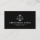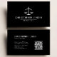 Present a professional image with this simple, minimalist black and white business card. The black background contrasts with the white justice scales logo and the white text to highlight your name, contact information and other details. A QR code on the back takes clients to your website.