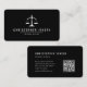 Present a professional image with this simple, minimalist black and white business card featuring rounded corners. The black background contrasts with the white justice scales logo and the white text to highlight your name, contact information and other details. A QR code on the back takes clients to your website.
