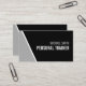 Tarjeta de presentación personal negrita Black and Grey Trainer con su información en negrita estilo de letra de texto en fondo negro con borde lateral diagonal gris. Perfecto para entrenador personal, entrenador de entrenadores de fitness y muchas otras profesiones.