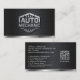 This bold and modern auto repair business card features a sleek metallic 3D style design with a polished auto mechanic logo that instantly communicates professionalism and hands‑on expertise. The brushed black background and chrome‑style emblem give the card a rugged, industrial look that stands out and reflects the strength and reliability of your automotive services. The back includes your name, contact information, phone number, email, and website, and a QR code for scanning for making it easy for customers to reach you when they need fast, dependable auto repair.