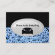 Detalle automático de la plantilla de tarjeta de visita en un diseño de dos lados fresco con gotas de agua en el fondo y emblema de la empresa con un símbolo de coche. Presentado en nuestro material de tarjetas de visita de formato más grande que es más alto que el tamaño estándar para mayor impacto visual. Diseñado para un servicio de lavado de coches o de detalles.
