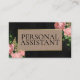 Estas tarjetas de presentación muy profesionales son negras con flores rosas en las esquinas y un marco de texto en papel Kraft. Estos son ideales para asistentes personales, compradores profesionales, organizadores de casas u oficinas y cualquier otra ocupación de consultores.