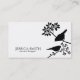 Cartas de negocios elegantes de color negro sobre blanco con dos pájaros encaramados en un árbol.