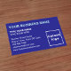 Tarjeta de visita que puede personalizar para que sus clientes o clientes encuentren fácilmente su dirección de negocio e información de contacto. Los colores de diseño y el estilo son textos en azul claro y blanco sobre fondo azul y textos alineados a la izquierda. Para personalizar de esta tarjeta de visita, sube el logotipo de tu empresa, escribe tu nombre de negocio, tu nombre, tu título, dirección, número de teléfono, correo electrónico y sitio web o tu página de red social de empresa. Después de subir el logotipo y escribir textos, por favor compruebe la apariencia en el frente y en el trasero. Si la apariencia le resulta agradable, puede realizar su pedido ahora. Si necesita cambiar el tamaño y mover el logotipo y los textos para que encajen en esta tarjeta de visita, cambie la herramienta de diseño. También puede realizar otros cambios en la herramienta de diseño según el aspecto de esta tarjeta de presentación que prefiera, como cambiar el color de fondo, el color de fuente y el estilo de fuente.