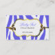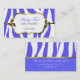 La tarjeta de visita elegante del estampado de animales, con un bígaro azul y blanco coloreó el estampado de zebra como fondo, en el frente y la parte posterior de la tarjeta. Una raya dorada decorativa corre a través del centro, en el frente y la parte trasera. Un oro que mira área de texto enmarcada tiene gráficos bonitos de las hojas del oro, por ambas partes, y del texto adaptable negro listo para personalizar para su negocio.