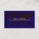 Un mapa negro del mundo en una tarjeta de visita azul oscuro, simple y elegante... perfecto para una agencia de viajes o cualquier otro profesional de relaciones internacionales.