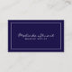 Tarjeta profesional simple y moderna de la Marina azul y blanca con su nombre en estilo moderno de caligrafía e información en sans serif moderno estilo de fuente con borde rectangular blanco. Perfecto para un maquillador, diseñador, fotógrafo, planificador de bodas y muchas otras profesiones.