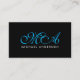 Tarjeta De Visita Azul Monograma Elegante Script Fondo negro
