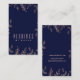 Tarjeta De Visita Azul y Rosa Dorado Glam Botánico Elegante Chic