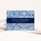 Elegantes, elegantes y sofisticadas tarjetas de visita con azulejos mediterráneos de color azul y blanco. Diseño moderno y de moda, perfecto para los amantes del Azulejo.