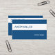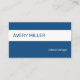 El moderno diseño minimalista presenta una franja blanca en el tercio superior de un fondo azul. Su nombre aparece en una fuente sans serif azul oscuro en el lado izquierdo de la banda. El título de su trabajo o especialidad aparece en el texto cursiva en blanco en la parte inferior derecha. La parte posterior repite la franja blanca con tu nombre y compañía/título en azul y tu información de contacto en blanco en la parte inferior derecha. Añade fácilmente tu nombre, título de trabajo, especialidad/empresa, sitio web e información de contacto en la barra lateral. Perfecto para un interiorista, consultor, organizador de eventos y otras profesiones. Para ver el diseño geométrico elegante de otros elementos, pulse el enlace "Artes Rocklawn". Imagen creada digitalmente. Copyright ©Claire E. Skinner. Todos Los Derechos Reservados.