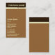 Una plantilla vertical de tarjeta de visita con un encabezado marrón con un borde de banda crema. Todos los detalles en la parte delantera con la parte posterior en blanco, que se pueden dejar tal como están o seguir personalizando. El diseño también permite añadir muchos elementos, por ejemplo un logotipo.