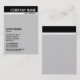 Una plantilla vertical de tarjeta de visita con un encabezado negro con un borde de banda blanca. Todos los detalles en la parte delantera con la parte posterior en blanco, que se pueden dejar tal como están o seguir personalizando. El diseño también permite añadir muchos elementos, por ejemplo un logotipo.