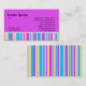 Una plantilla de perfil de rayas multicolor / tarjeta de visita lista para ser personalizada. la parte frontal tiene un área de pie de banda. La parte trasera está decorada con un diseño de rayas completas.
