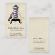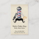 A custom design of a barber shop pole with a razor, scissors and a man's mustache. This business card can be used by a barber or barber shop. Easy to edit. Background is tan.