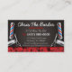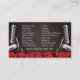 Este es un diseño de tarjetas de negocios de barbería de PERSONALIZABLE. El diseño está representado por los colores de la barbería de azul y rojo. Toda la obra de arte fue creada e ilustrada por Dale Arthur de whizcreations.net.