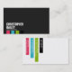 Un diseño de cogida simple, pero del ojo de visita de la tarjeta. Este diseño es perfecto para el hombre de negocios minimalista. Profesional, liso, y derecho al punto. Cuatro barras coloreadas en fondos blancos y negros se utilizan para destacar toda la información dominante.