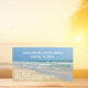Bonitas tarjetas de negocios para la gestión de propiedades en la playa, con las cristalinas aguas verdes del océano y la hermosa arena a orillas del mar. Personalice la información de su empresa de alquiler de vacaciones o los datos de la agencia inmobiliaria frente a la playa para repartirlos a los posibles compradores en un pueblo de playa. El blanco sobre el cielo azul bonito añade una moda, un aspecto moderno para un inmueble de casas costeras.